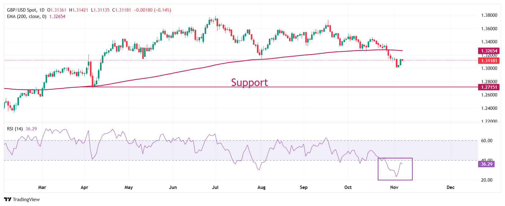 - 在周五的欧洲时段,英镑兑美元(USD)小幅下跌至接近1.3110。由于美元在周四的下跌后反弹,GBP/USD面临压力。