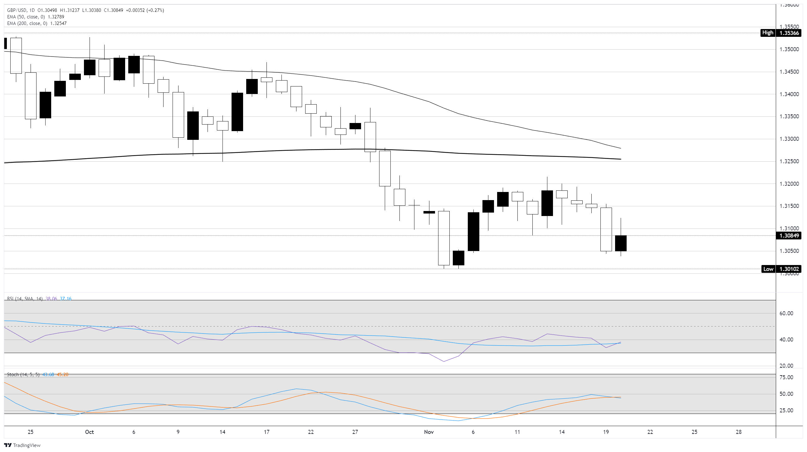 英镑/美元在周四结束了四天的下跌趋势,从1.3050区域获得微薄的技术反弹。侭管汇价仍处于长期移动均缐的看跌一侧,但投资者在周五的数据发布前稍作喘息。
