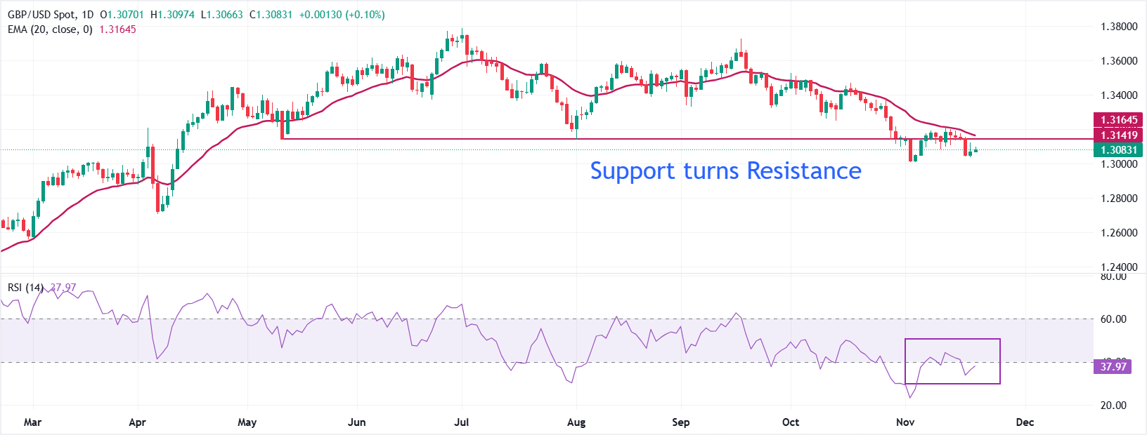 - 在周五的欧洲交易时段,英镑努力维持对美元(USD)1.3050的即时低点。由于美元走强,GBP/USD对也面临广泛压力,市场普遍预期美联储(Fed)在12月的政策会议上可能不会再次降息。