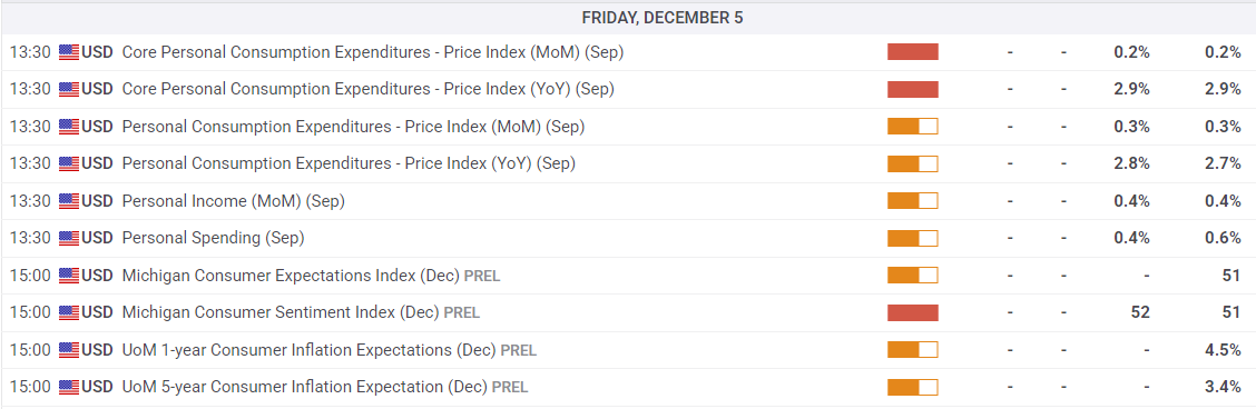 在美联储召𫔭会议讨论利率之前,最新的个人消费支出价格指数(PCE)通胀报告将于周五发布。该数据来自9月份,时间上过于滞后,无法立即与美联储对12月降息的讨论相关。然而,即使是旧数据的强劲上升,也可能对连续第三次降息造成干扰。