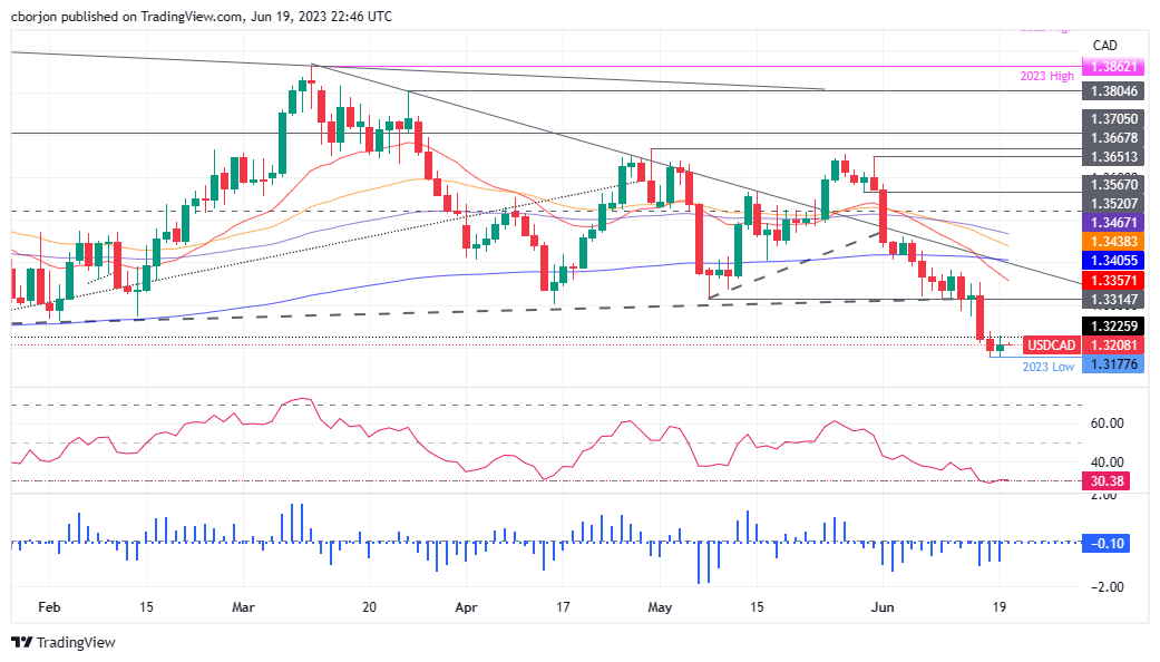 上周,美元/加元跌破2022年11月低点以来支撑趋势缐1.3314附近。美元/加元加剧下跌,跌至年初至今(YTD)的新低1.3177,然后反弹至1.3200上方。