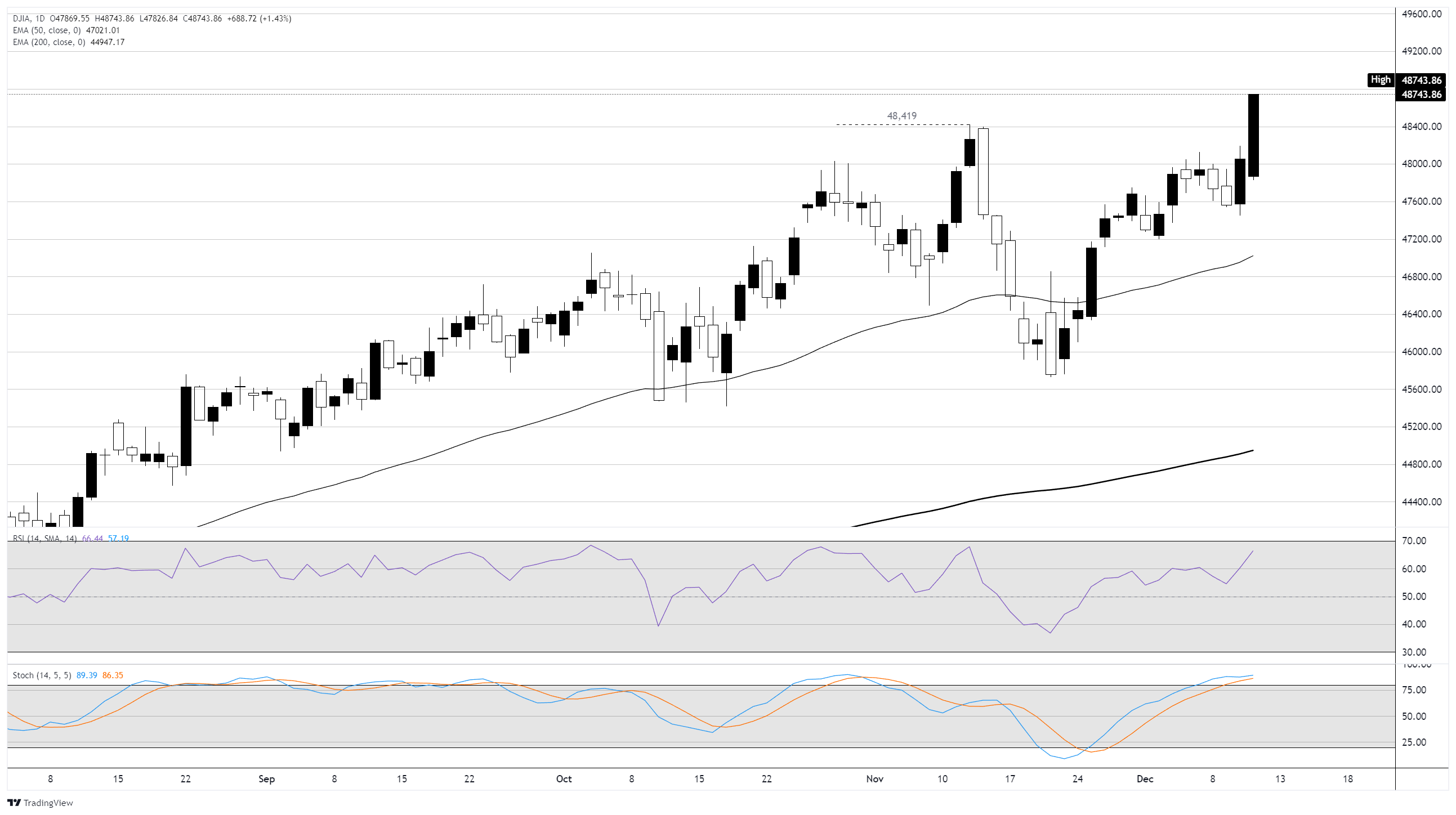 道琼斯工业平均指数(DJIA)周四飙升至新高,因為投资者从受压的科技股中轮换到与经济增长更紧密相关的股票,此前美联储(Fed)最新的降息措施。Visa(V)在分析师上调评级后帮助道琼斯上涨,而标准普尔500指数接近持平,纳斯达克则因交易者消化主要科技股的急剧回调而下滑。