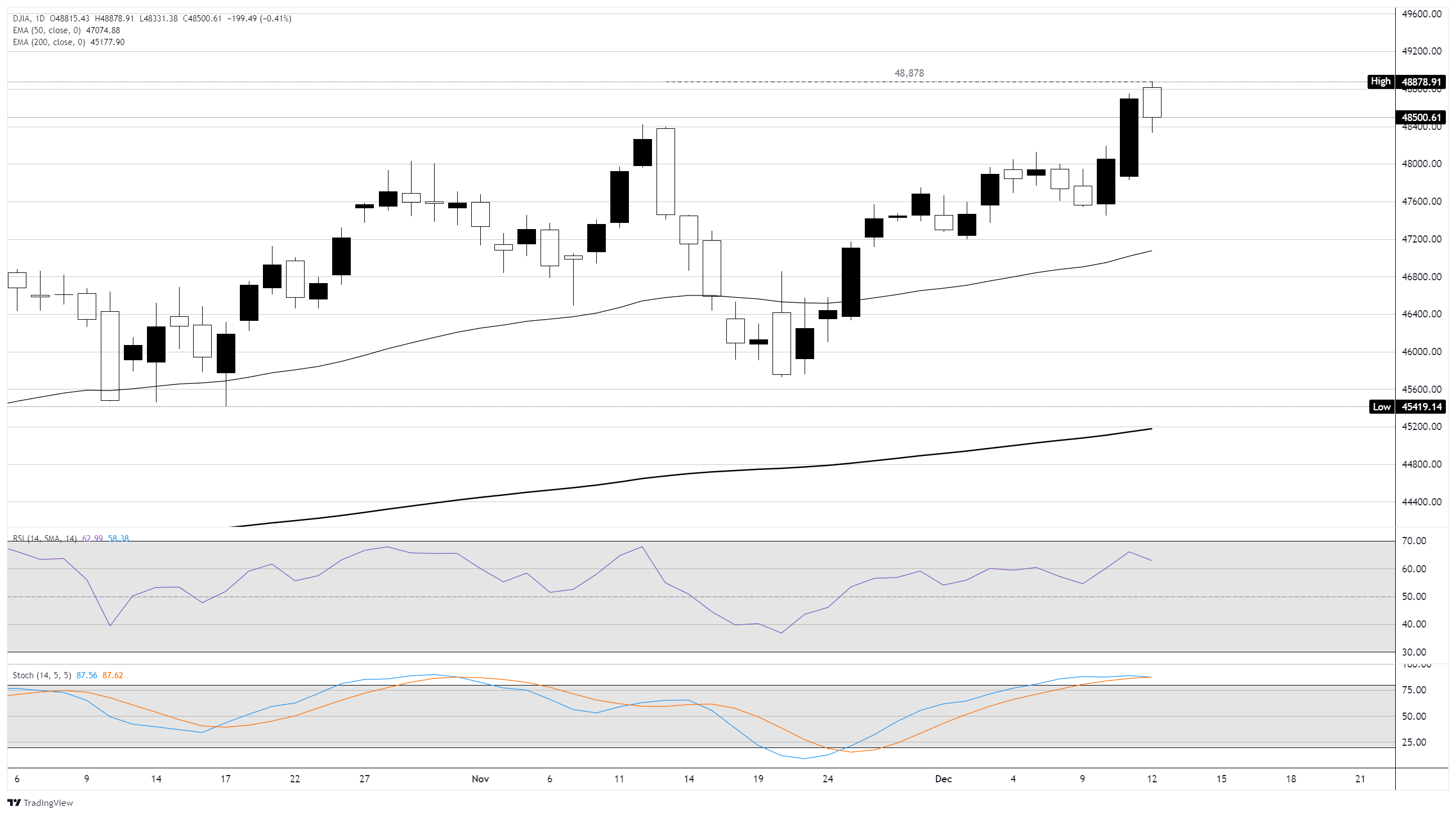 道琼斯工业平均指数(DJIA)在周五从创纪录的盘中高点回落,与其主要指数同行一起,投资者继续从科技股轮换到价值导向的行业。道琼斯指数短暂触及新的盘中纪录后回落0.30%。侭管在交易周后半段美国科技领域出现了一些通缩,但道琼斯指数有望以高点结束本周,较周一的初始报价上涨1.26%。