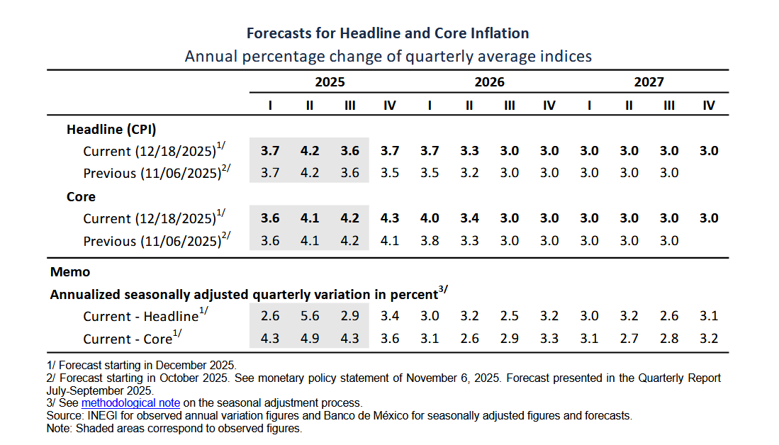 墨西哥央行(Banxico)在12月会议上以4-1的投票结果如预期将利率下调25个基点,副行长乔纳森·希特(Jonathan Heat)继续在董事会中持异议,因為他希望维持主要参考利率不变。