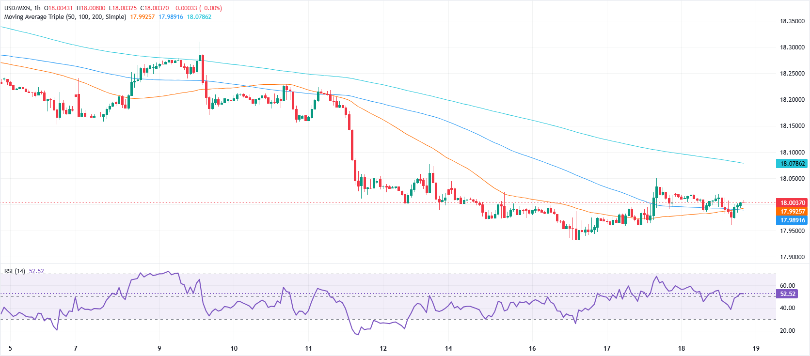 美元/墨西哥比索几乎没有反应,维持在18.00左右,几乎没有变化。在这一年中,这一异国情调的货币对已下跌超过12%,反映了去年的价格走势。只要保持在18.07以下,进一步下行的可能性仍然存在,投资者关注12月16日触及的年内低点17.92。