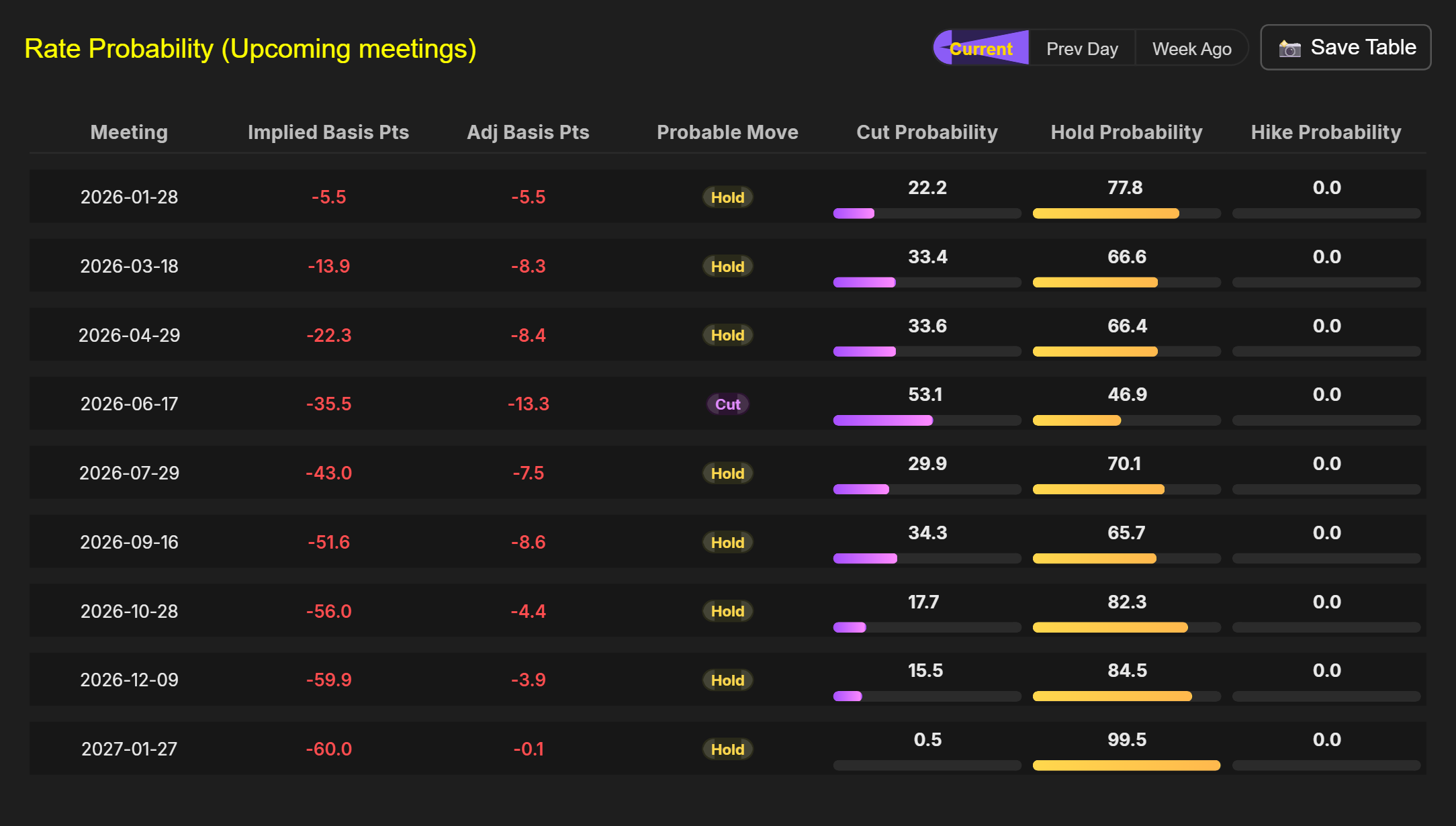 - 根据Capital Edge利率概率数据,市场对美联储在1月28日下次会议上降息的预期保持不变,為22%。侭管如此,投资者预计全年将降息60个基点,首次降息预计在6月。