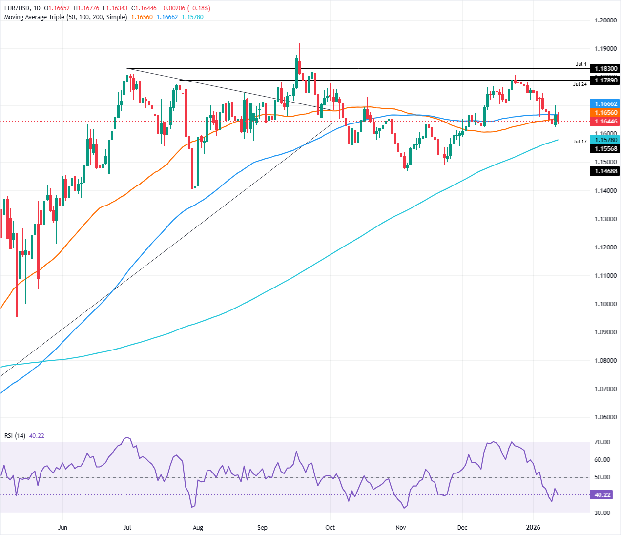 技术展望:欧元/美元因卖盘涌入而下跌,推动该货币对跌破1.1650