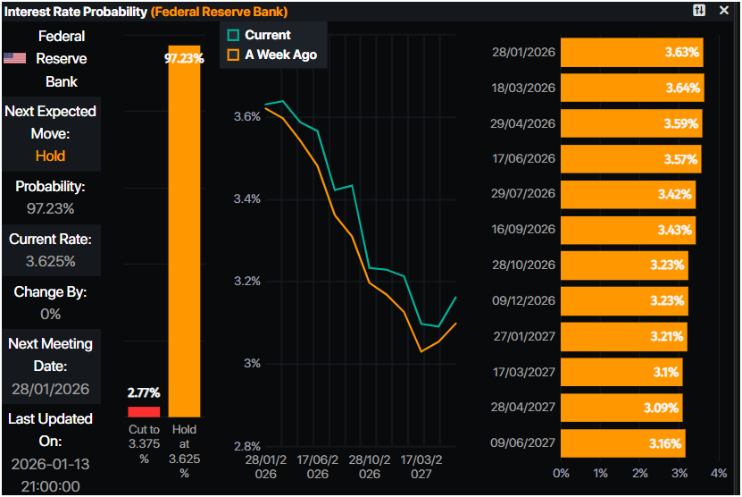 货币市场已削减美联储25个基点降息的可能性,Prime Market Terminal的利率概率工具显示,交易者预计美联储基金利率将最终达到3.23%,暗示降息52个基点。