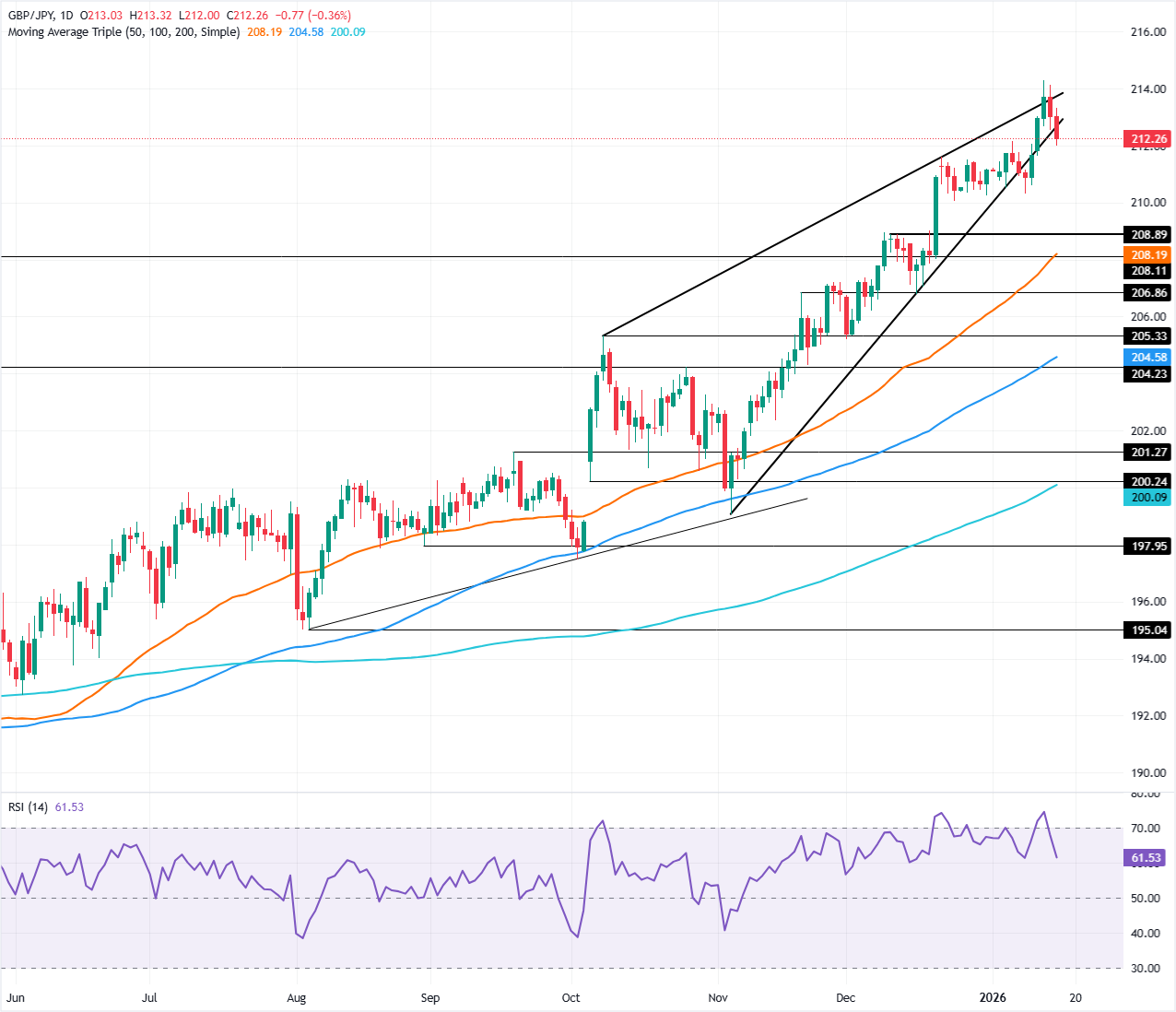 相反,如果该交叉货币对突破1月15日的高点213.31,则下一个关键阻力位将是年内高点214.29。