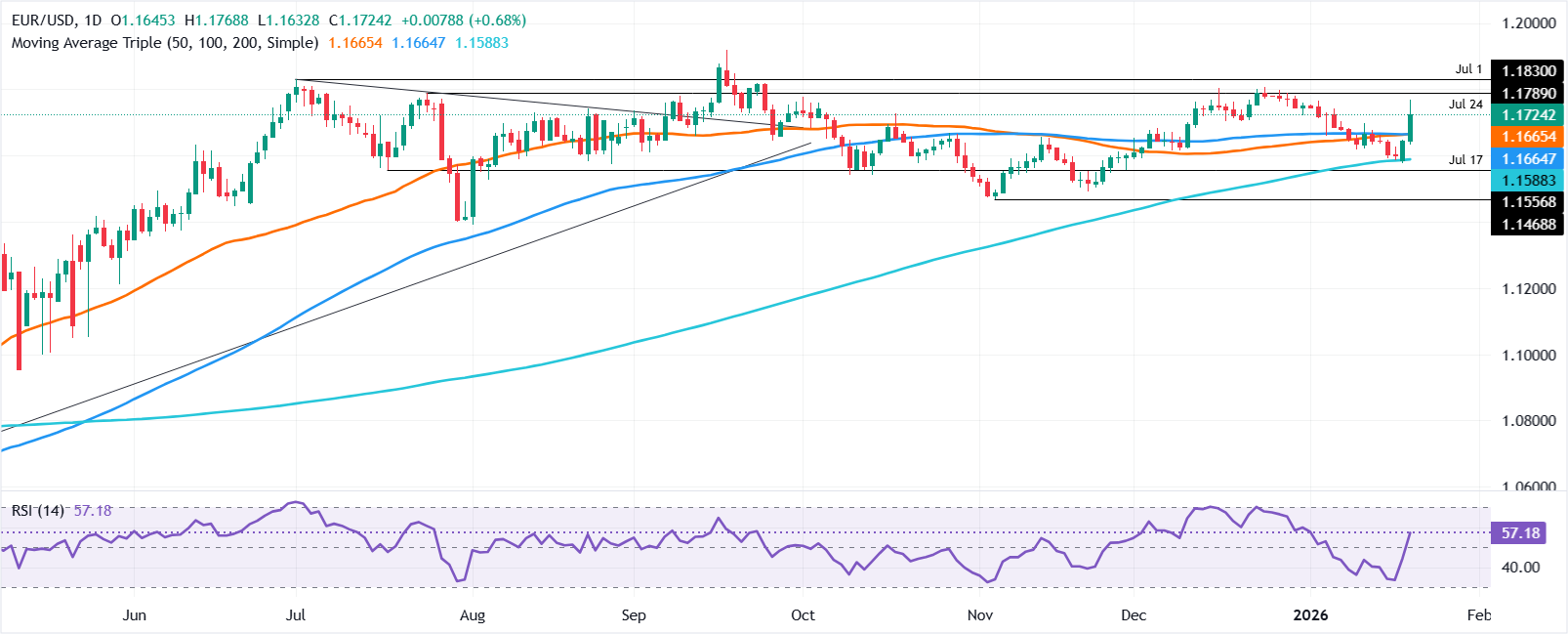 - 欧元/美元因特朗普对格林兰的关税威胁而上涨近0.7%,引发美元广泛抛售。