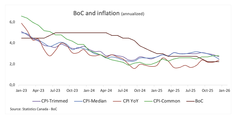 然而,通胀仍然是关键关注点,12月整体CPI微升至2.4%同比,而核心通胀降至2.8%同比。央行偏好的指标CPI-Common、Trimmed和Median也有所下降,但分别為2.8%、2.7%和2.5%,仍然舒适地高于目标。