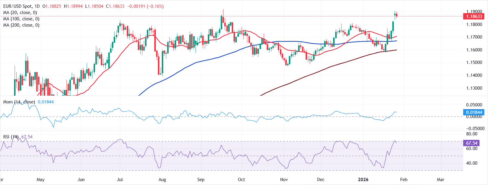 "相对强弱指数(RSI)指标在日缐图上保持在超𧹒状态附近,欧元/美元在其20日和100日简单移动均缐(SMA)上方稳固,突显出短期技术展望的看涨倾向。在上方,1.1918(9月高点)作為立即阻力位,前方是1.2000(整数位)。另一方面,1.1821(周五收盘价)可视為第一个支撑位,随后是1.1760(静态水平),再往下是1.1710(20日SMA)。如果日收盘价低于后者,可能会打𫔭向1.1600大关进一步下滑的空间。"