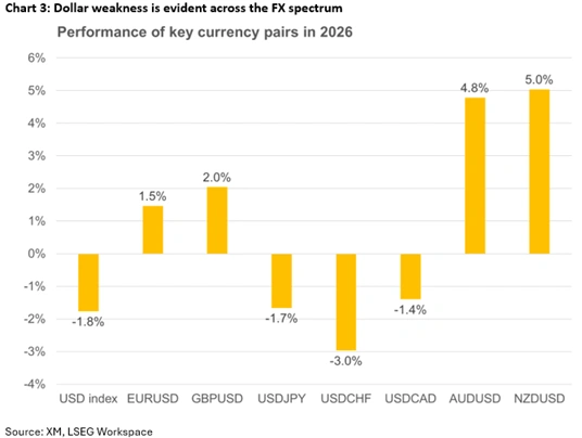 随著其他地方的事态发展转移了人们对英国的关注,英镑一直受益于美元的困境。英镑/美元在1月份上涨了2.3%——这是自2019年以来最强的年初表现——此前在2025年曾录得7.7%的惊人涨幅。