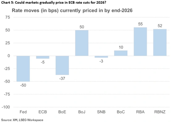 一系列强劲的美国数据,若能印证目前劳动力市场企稳的迹象,同时通胀压力再次小幅回落,可能為美元提供重要的喘息之机。然而,美联储官员的鹰派言论对于这种走势的持续性至关重要。侭管美联储会议基调乐观,且米拉恩(Miran)此次投票支持降息25个基点,但就现阶段而言,美联储官员发表鹰派言论并非基准情景。