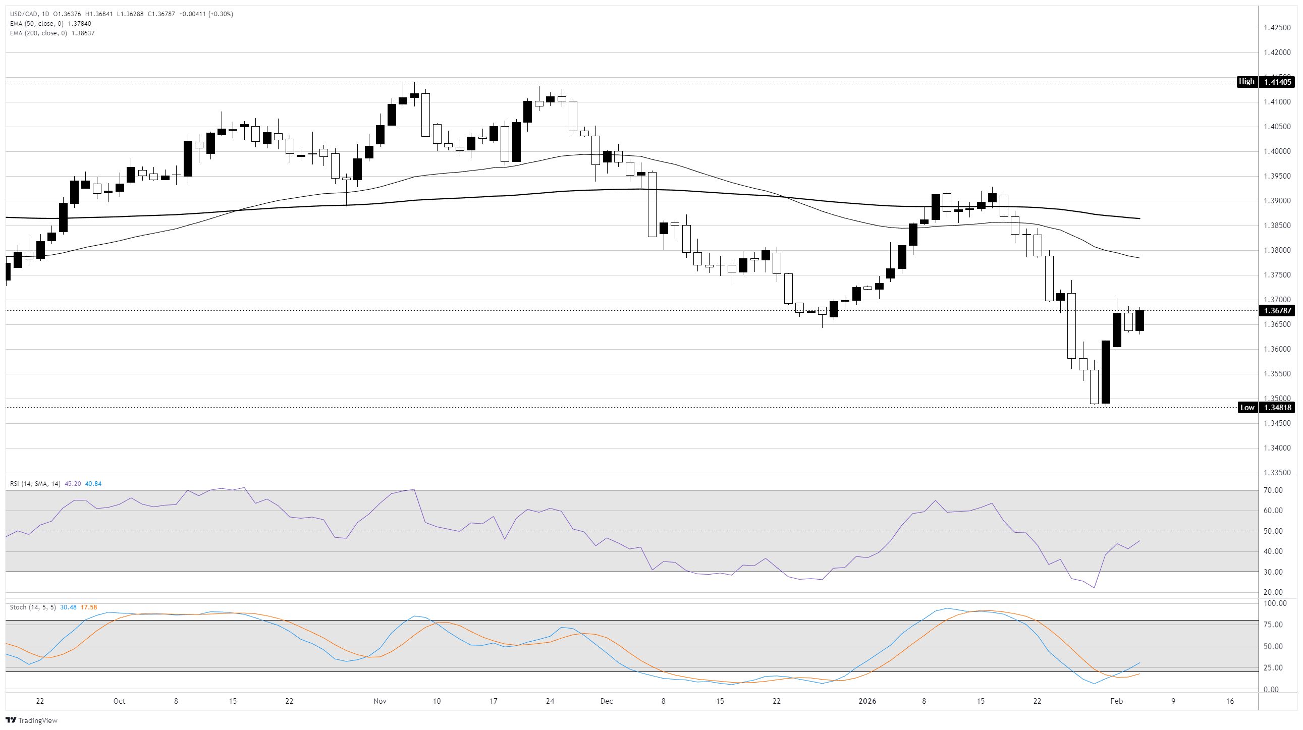 加拿大元(CAD)在周三对美元(USD)保持稳定,交易价格略低于1.3700,因為市场适应了部分美国政府关门的结束,并消化了一份疲软的私人就业报告。加元从1月底触及的十六个月高点回落,此次回撤是由于加拿大经济增长数据疲软以及在凯文·沃什被提名為美联储(Fed)主席后美元需求的适度反弹。