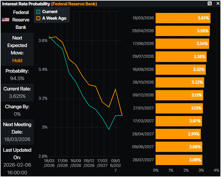 数据方面较為清淡,由于美国政府停摆,1月份的非农就业数据推迟至2月11日。密歇根大学(UoM)调查显示,美国消费者信心有所改善,但应谨慎解读,因為调查显示「拥有最大股票投资组合的消费者信心激增,而没有股票持有的消费者信心停滞在悲惨水平,」调查主任乔安娜·徐表示。