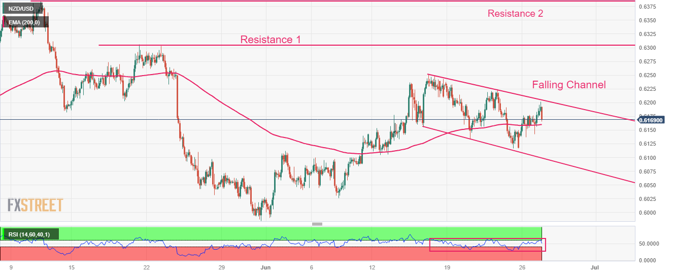 200周期指数移动均缐(EMA)约0.6160為纽元/美元提供了一些缓冲。