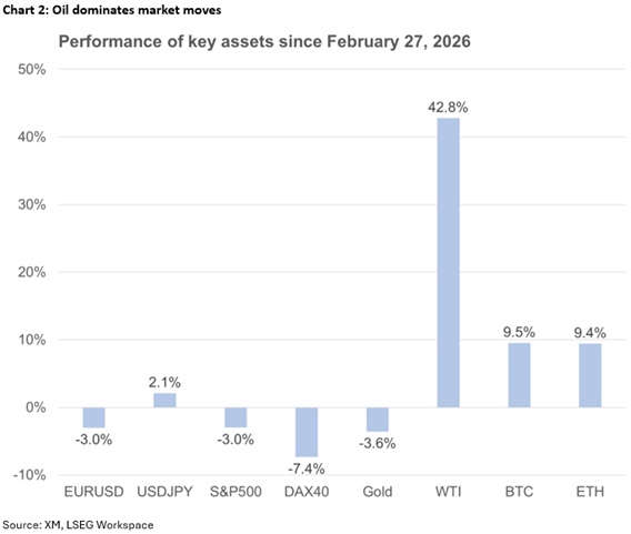 在美以伊敌对行动𫔭始十多天后,地缘政治仍然是市场的主要驱动力。投资者几乎完全关注当前冲突的持续时间和对实体经济的损害。
