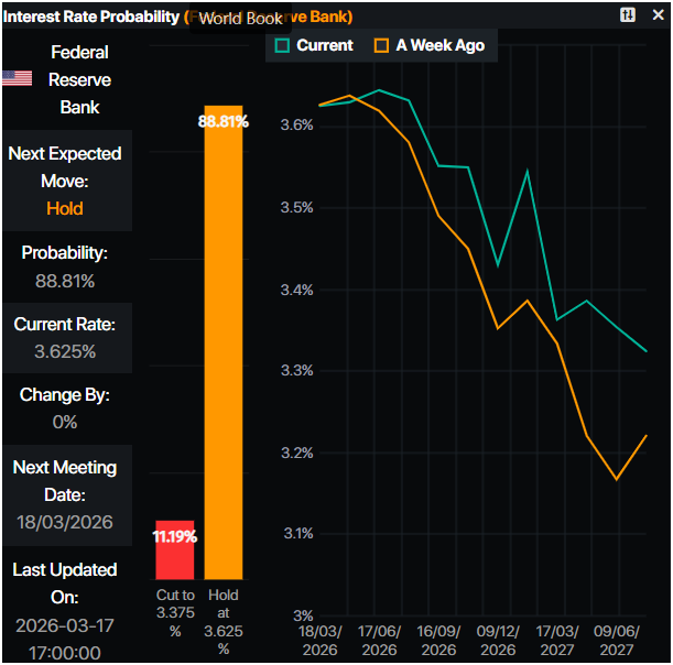 货币市场预计美联储在3月会议上将维持利率不变,预计年底前仅降息25个基点。在美联储做出决定后,投资者将关注美联储主席杰罗姆·鲍威尔的新闻发布会。