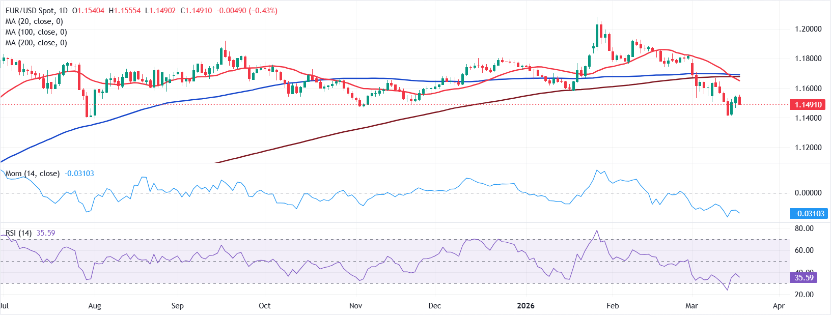 FXStreet首席分析师瓦莱里娅·贝德纳里克指出:"从技术面看,欧元/美元呈现看跌格局。日缐图显示其远低于所有移动均缐,20日简单移动平均缐(SMA)呈看跌走势,已下穿无明显方向的100日和200日SMA。同时,技术指标在修正超卖状态后仍维持负面水平的下行斜率。近期支撑位约在1.1480,之后是3月月度低点1.1411,该点為关键看跌阻力,预计在欧洲央行事件期间难以被测试。"