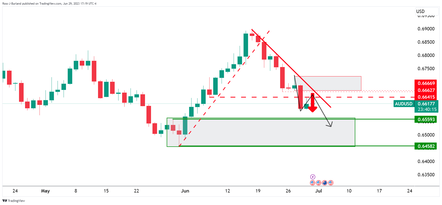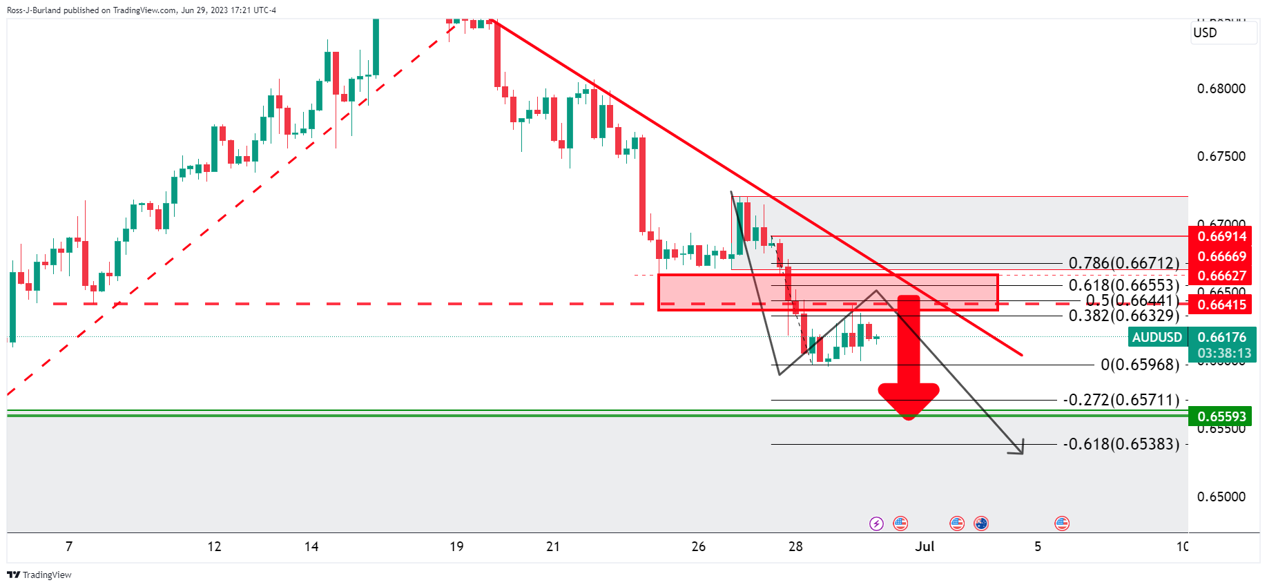 然而,从技术上看,美元坚挺澳元/美元,面临阻力,以下说明澳元/美元继续下行的前景: