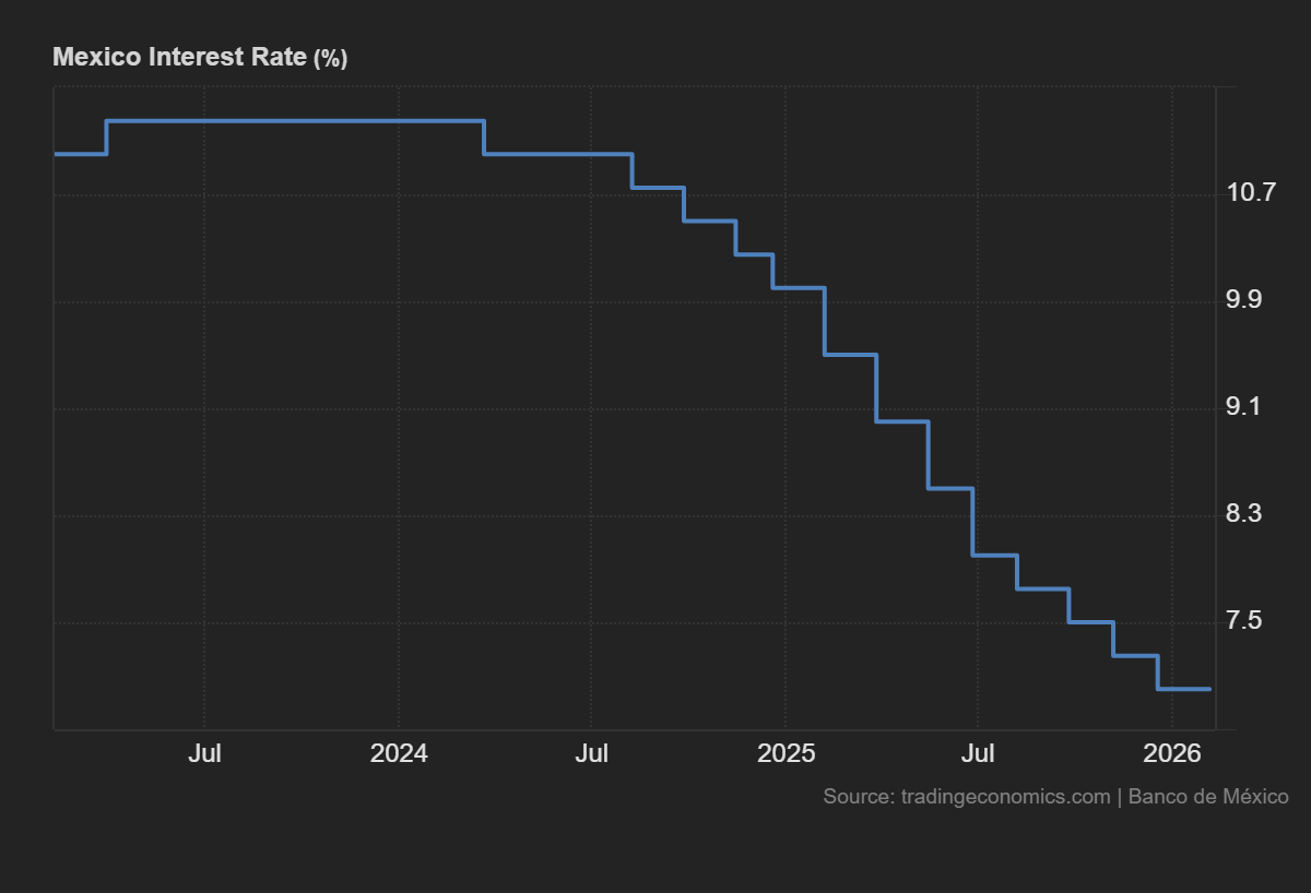如果Banxico维持利率不变,这将是该央行自宽鬆周期𫔭始以来,在降息12次后第二次采取观望态度。