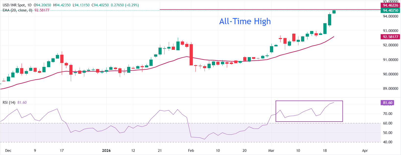 技术分析:美元/印度卢比(USD/INR)创下约94.40的新历史高点
