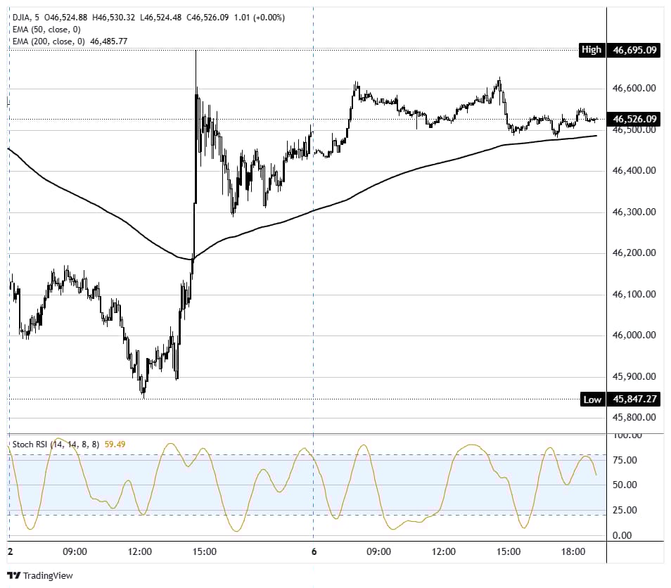 道琼斯工业平均指数(DJIA)在复活节前的周五市场休市后的首个交易日周一微涨120点,涨幅為0.3%。该指数在早盘交易中一度冲向46,700点,随后在午盘时段回落,最终收于约46,500点。标普500指数上涨0.4%,纳斯达克综合指数上涨0.5%,延续了上周分别上涨3%、3.4%和4.4%的涨势。周一的交易日是交易者首次有机会消化周五公布的3月份非农就业报告(NFP),数据显示经济新增就业岗位178K,远超预期的60K。