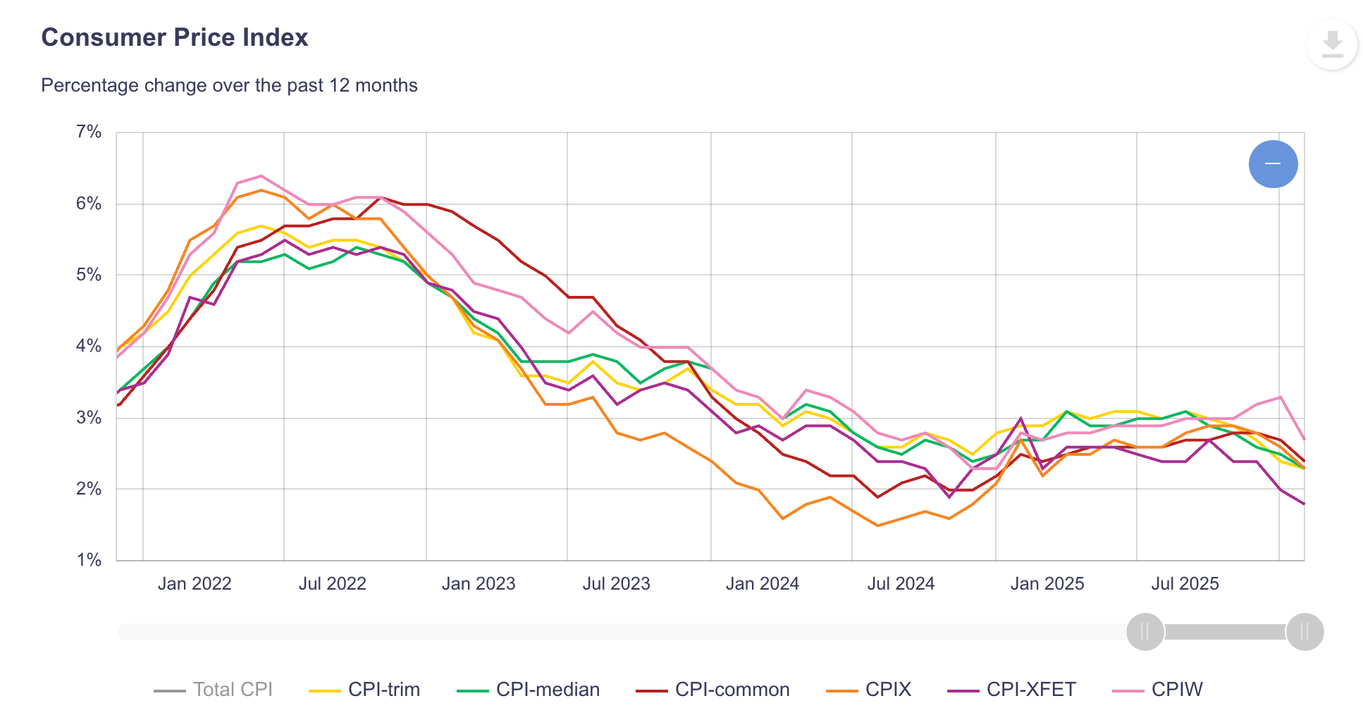 - 年度CPI通胀预计已跃升至2.5%,高于加拿大央行的目标。