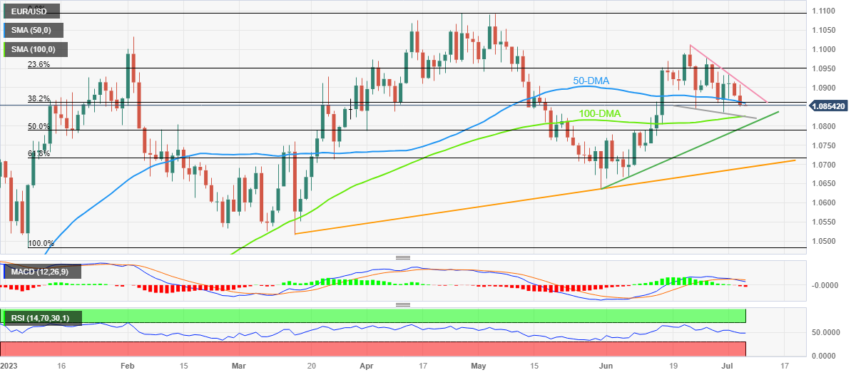 然而,发稿时100简单移动均缐和两周下降趋势缐汇合于1.0825附近,该水平构成空头强阻力。