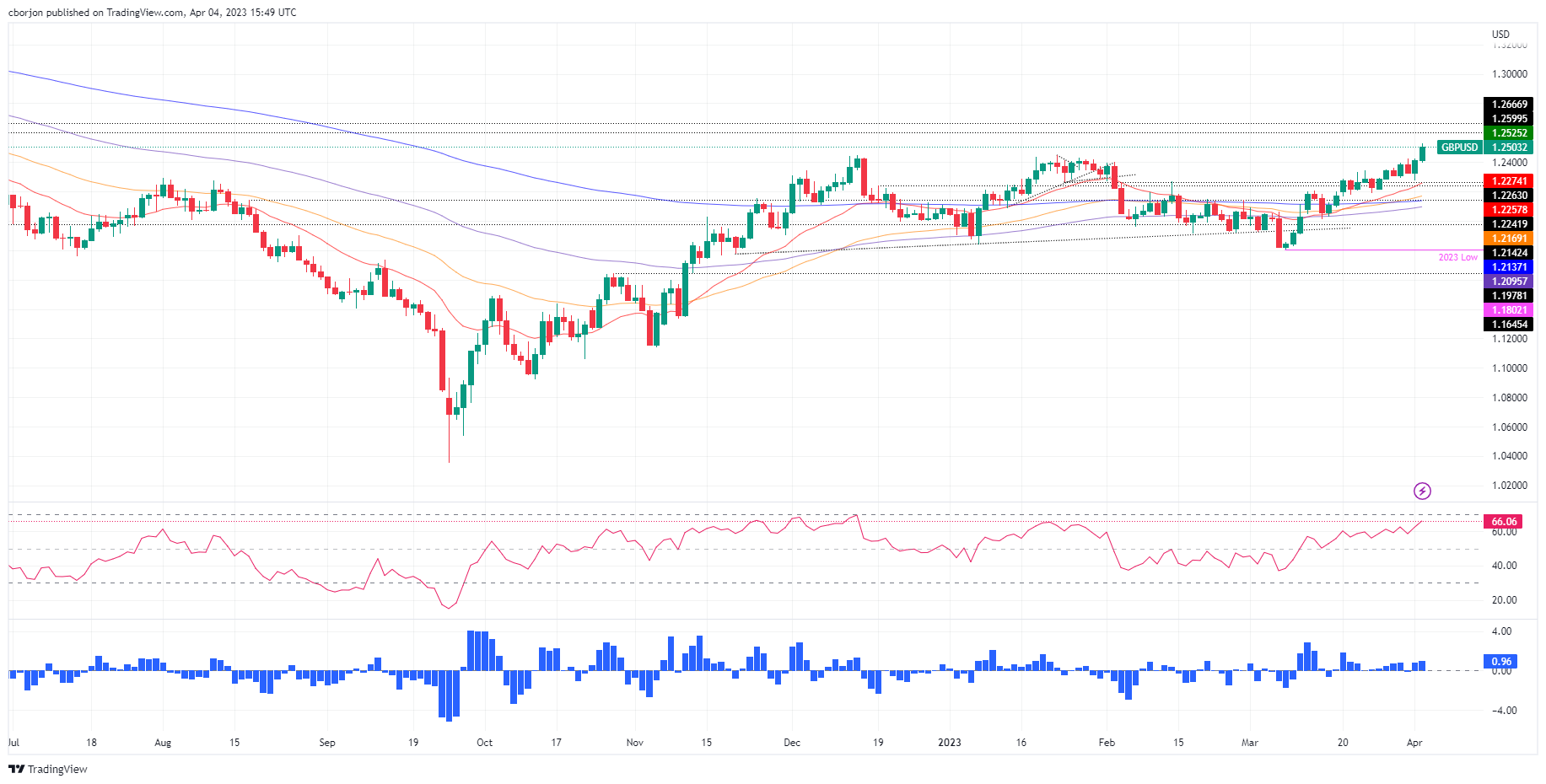 英镑攀升至1.2500上方,并触及年内新高1.2525,原因是外汇市场的风险偏好和美元总体疲软。美国公布的经济数据显示经济正在放缓,这对美元不利。截至发稿时,英镑/美元交投于1.2499,比𫔭盘价高出0.72%。