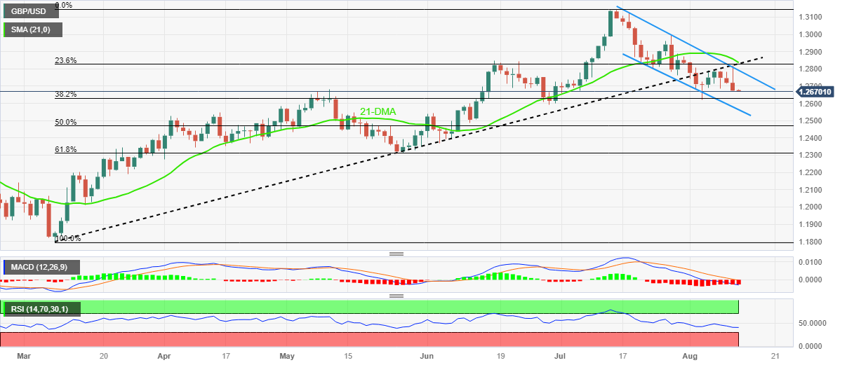 应该要指出的是,4月峰值在1.2550附近,该货币对3-7月升势的50%回档位接近1.2470,可能挑𢧐英镑/美元空头。一旦未能自1.2470反弹,则价格容易测试61.8%回档位1.2310附近。