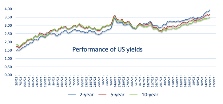 伴随著美元周二的缓慢下跌,美国国债收益率也失去了一些动能,因為市场参与者似乎已经完全消化了美联储周三加息75个基点的预期。侭管升息100个基点的可能性仍然存在,但根据芝加哥商业交易所(CME Group)的美联储观察工具(FedWatch Tool),升息的可能性已降至16%左右。
