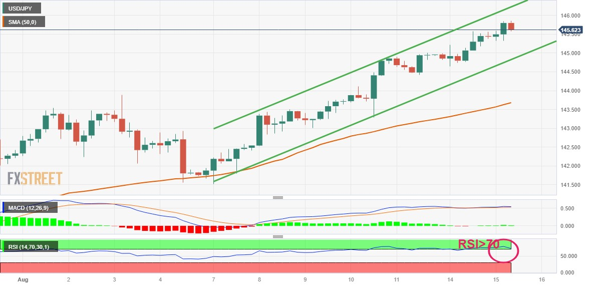 从技术面看,美元/日元在过去1.5周强势上扬一直处于上升通道内。加上上周突破145.00的心理关口,增强了美元/日元的乐观前景。不过1小时图上的RSI略微超𧹒,值得看涨交易员保持谨慎。