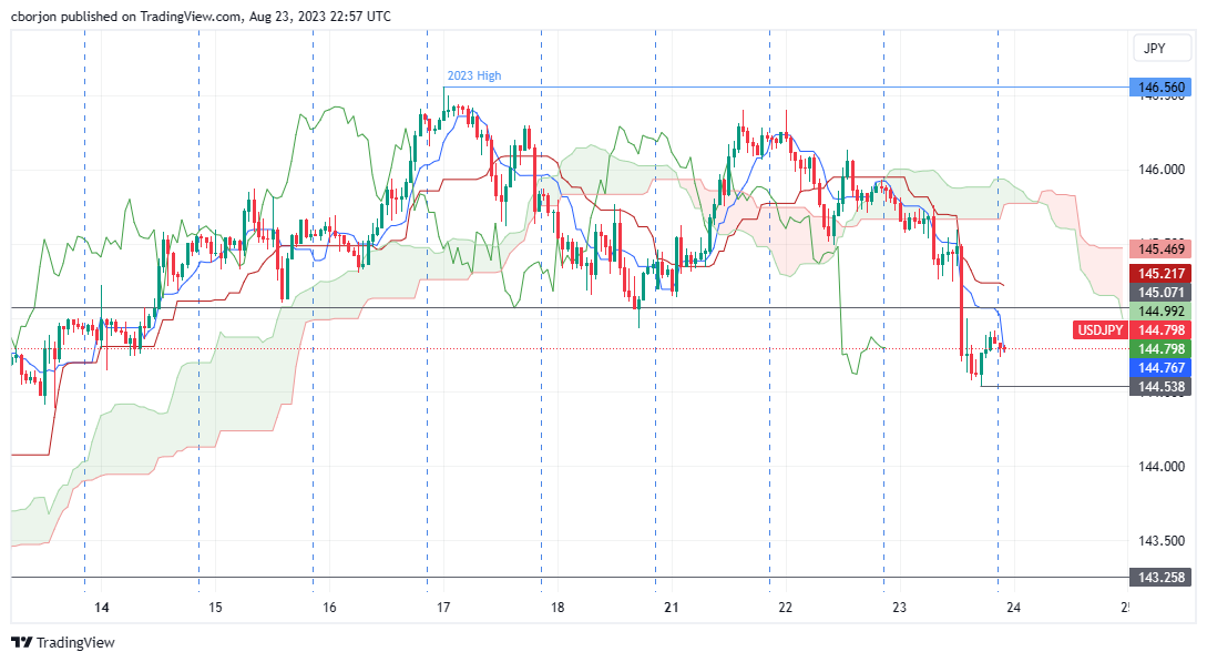 第一支撑位是 8 月 23 日的震盪低点 144.54,然后是8 月 10 日的日缐低点 143.26。如果明确跌穿该水平,美元/日元可能会跌向 143.00 水平。